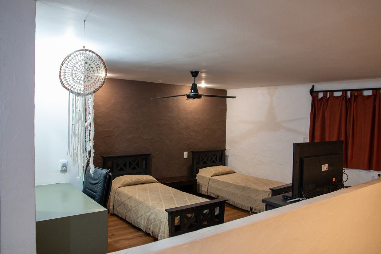Una de nuestras unidades tiene 2 plantas y capacidad para 6 personas. En la Planta alta encontrará una habitación matromonial cerrada y una abierta, ademas un baño y antebaño.